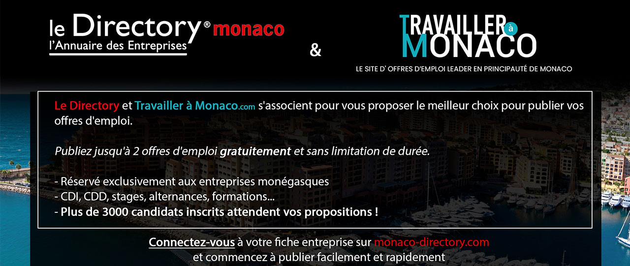 Entreprises monégasques : publiez désormais vos offres d'emploi facilement et gratuitement sur Travailler à Monaco.com grâce à notre partenaire exclusif le Directory